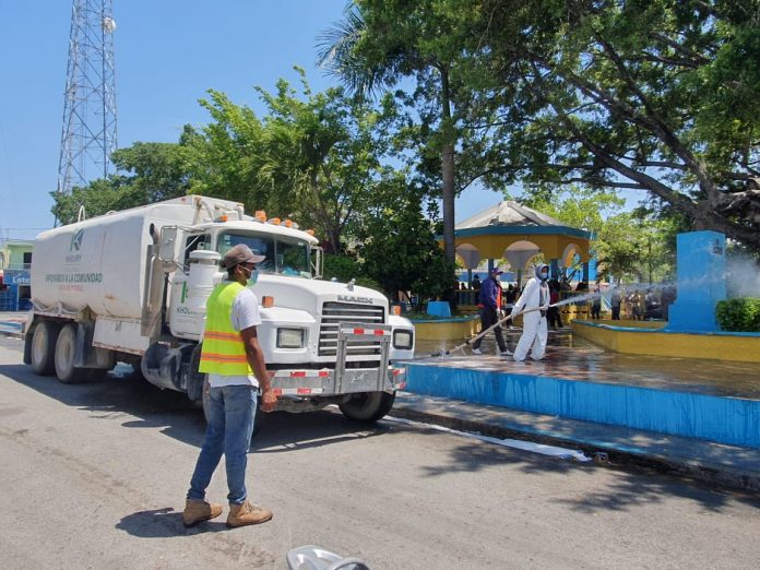 DIARIO VISION.-Cabral-Barahona.-  Con el objetivo de evitar  la propagación del cororonavirus (Covid-19), la empresa Khoury Industrial realizó en coordinación con las autoridades municipales electas, un amplio operativo de higienización en los principales espacios públicos del municipio de Cabral.