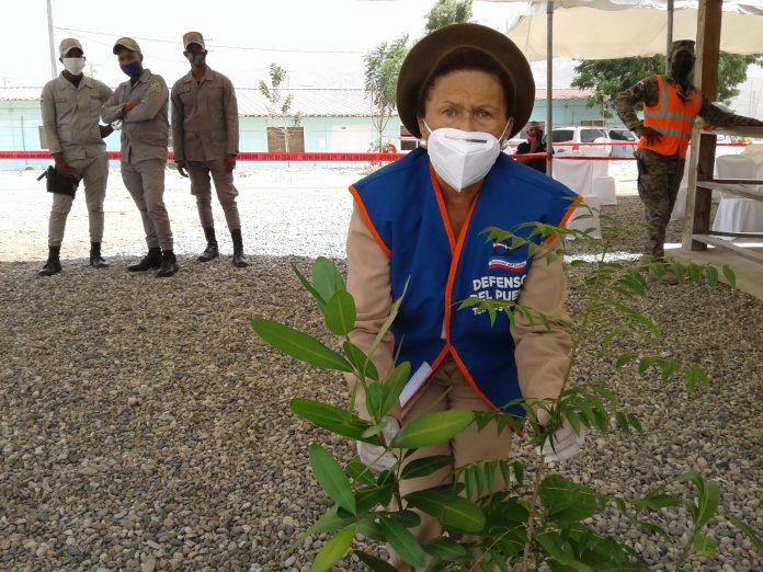 DIARIO VISION.-Barahona.- La Defensora del Pueblo, Zoila Martínez Guantes, hizo entrega de diez mil árboles frutales  al proyecto de construcción de la Presa de Monte Grande, para ser sembradas en el nuevo poblado que albergará  las     familias que  integran las comunidades de Monte Grande, Los Güiros, La Meseta y San Simón, que fueron reubicadas por la construcción de la Presa.