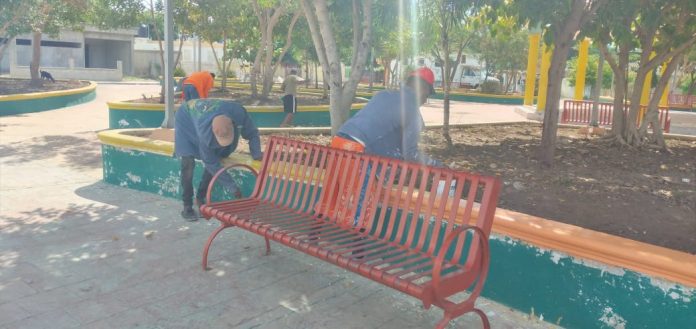 Bolívar Volquez, director municipal manifestó que dispuso la colocación de pintura y limpieza del parque de esta comunidad.