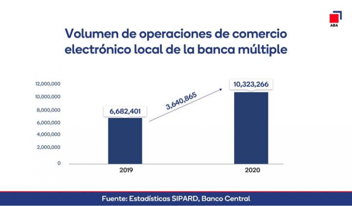 La ABA informó que las operaciones de comercio electrónico internacional, realizadas a través de la banca nacional, concluyeron el año 2020 con un monto total de RD$59,340 millones. Esto significa un crecimiento de 2.3% con relación a 2019, equivalente a RD$1,341 millones.