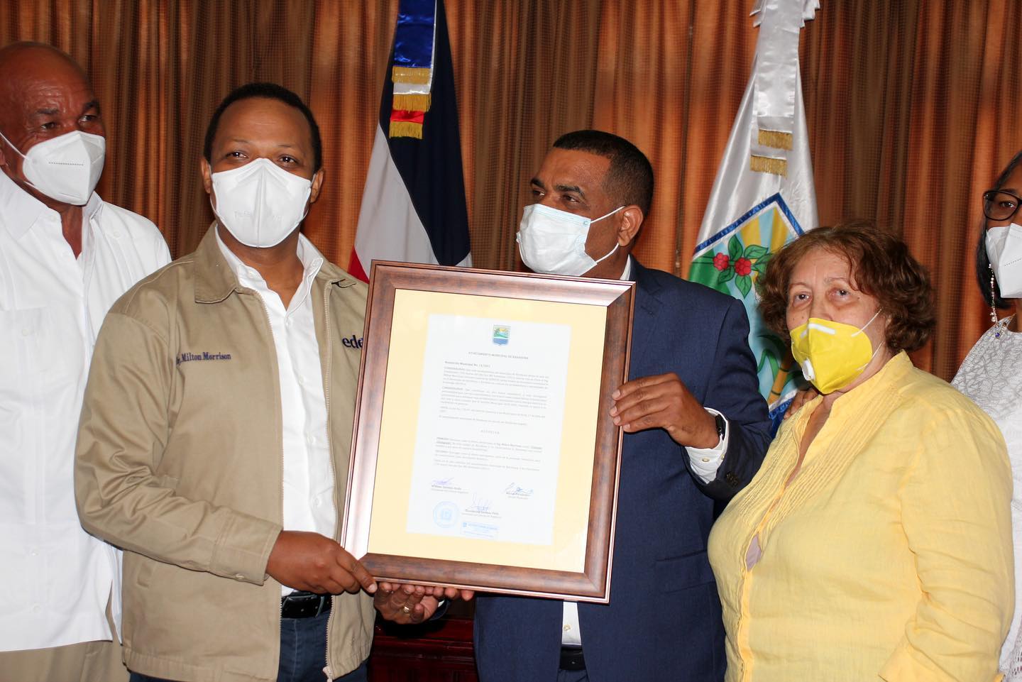 DIARIO VISION.-Barahona.- La alcaldía del municipio Santa Cruz de Barahona, hizo entrega de un reconcomiendo al ingeniero Morrison, Gerente Administrador General la Empresa Distribuidora de Electricidad del Sur (EDESUR).