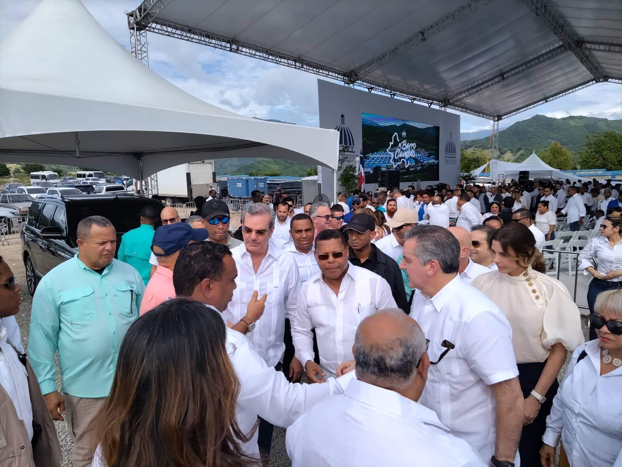 En el acto también estuvieron presentes además, el presidente de la Cámara de Diputados, Alfredo Pacheco; el ministro de Turismo, David Collado; la senadora Lía Díaz; la gobernadora provincial, Ángela (Grey) Pérez Díaz; el presidente de Indotel, Nelson Arroyo; el alcalde Ruddy González; el empresario donante de los terrenos, Ángel Darío Ramírez, en cuyo honor lleva su nombre el proyecto, así como diputados, regidores y funcionarios provinciales y municipales y de Propeep.