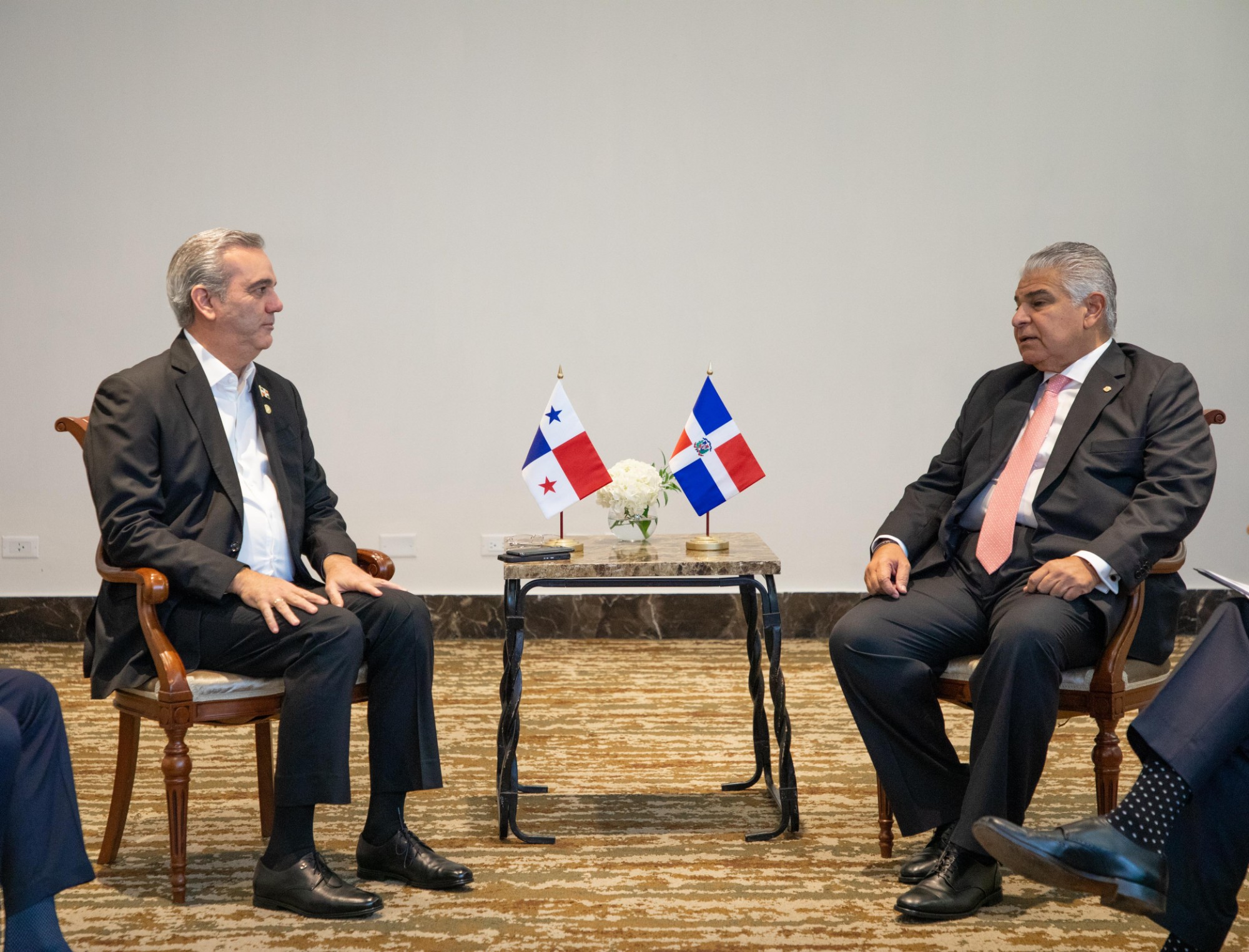 Tanto el presidente electo de Panamá, José Raúl Mulino Quintero, como los mandatarios de la República de Honduras, Xiomara Castro y de la República de Costa Rica, Rodrigo Chaves, se comprometieron a viajar a la República Dominicana el próximo 16 de agosto para la juramentación para el nuevo periodo de Gobierno del presidente Abinader.El presidente Abinader regresa esta tarde al país para ponerse al frente de las acciones ante posible paso huracán Beryl.En las reuniones acompañaron al presidente Abinader el ministro de Relaciones Exteriores, Roberto Álvarez; el presidente del Partido Reformista Social Cristiano (PRSC), Federico Antún Batlle (Quique); la embajadora de República Dominicana en Panamá, Violeta Mazara; el jefe del Cuerpo de Seguridad Presidencial, mayor general Jimmy Arias; el encargado de la Secretaría General del Gabinete del presidente, Eilyn Beltrán; su asistente Lourdes Herrera y el director de Prensa del Presidente, Daniel García Archibald.Por Panamá estuvieron presentes, el ministro de Relaciones Exteriores, Javier Eduardo Martínez-Acha Vásquez; el ministro de Comercio e Industrias, Julio Moltó; el ministro del Canal de Panamá, José Ramón Icaza; el viceministro de Política Exterior, Carlos Ruíz-Hernández y el viceministro de Asuntos Multilaterales y Cooperación, Carlos Guevara Mann.