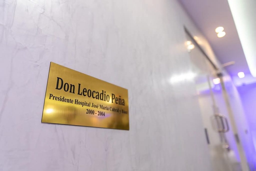 Este salón dedicado a la formación en materia de salud del referido centro hospitalario, construido y auspiciado con fondos del Banco de Reservas, fue nombrado en honor Don Leocadio por sus grandes aportes y contribución al patronato del Centro Médico.