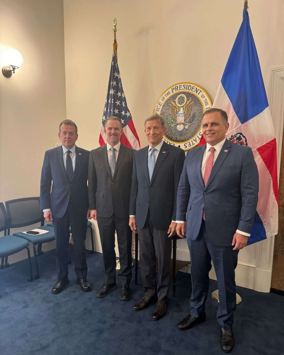 Una delegación de la República Dominicana, integrada por el ministro de Hacienda,Jochi Vicente, el Ministro de Industria Comercio y Mipymes, Victor Bisonó y el Canciller dominicano Roberto Álvarez, sostuvieron una reunión de trabajo con el encargado de negocios de la Casa Blanca.