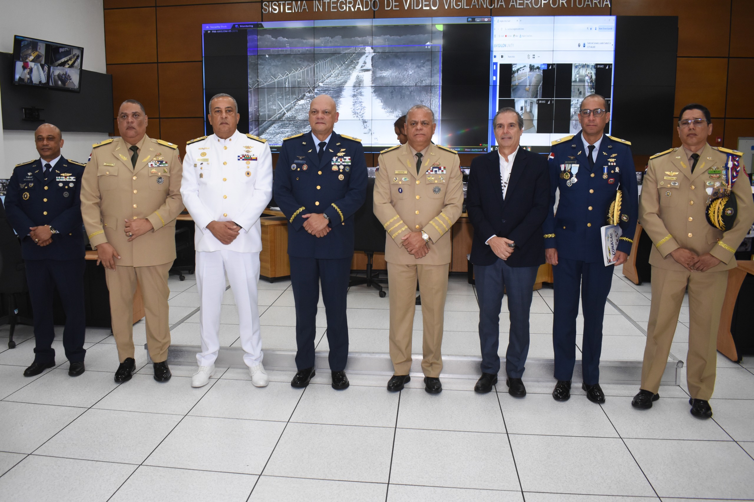 La comitiva también recorrió el Centro de Comando y Control Central (C4), punto neurálgico de la vigilancia y respuesta coordinada ante cualquier eventualidad en las terminales aéreas del territorio nacional.