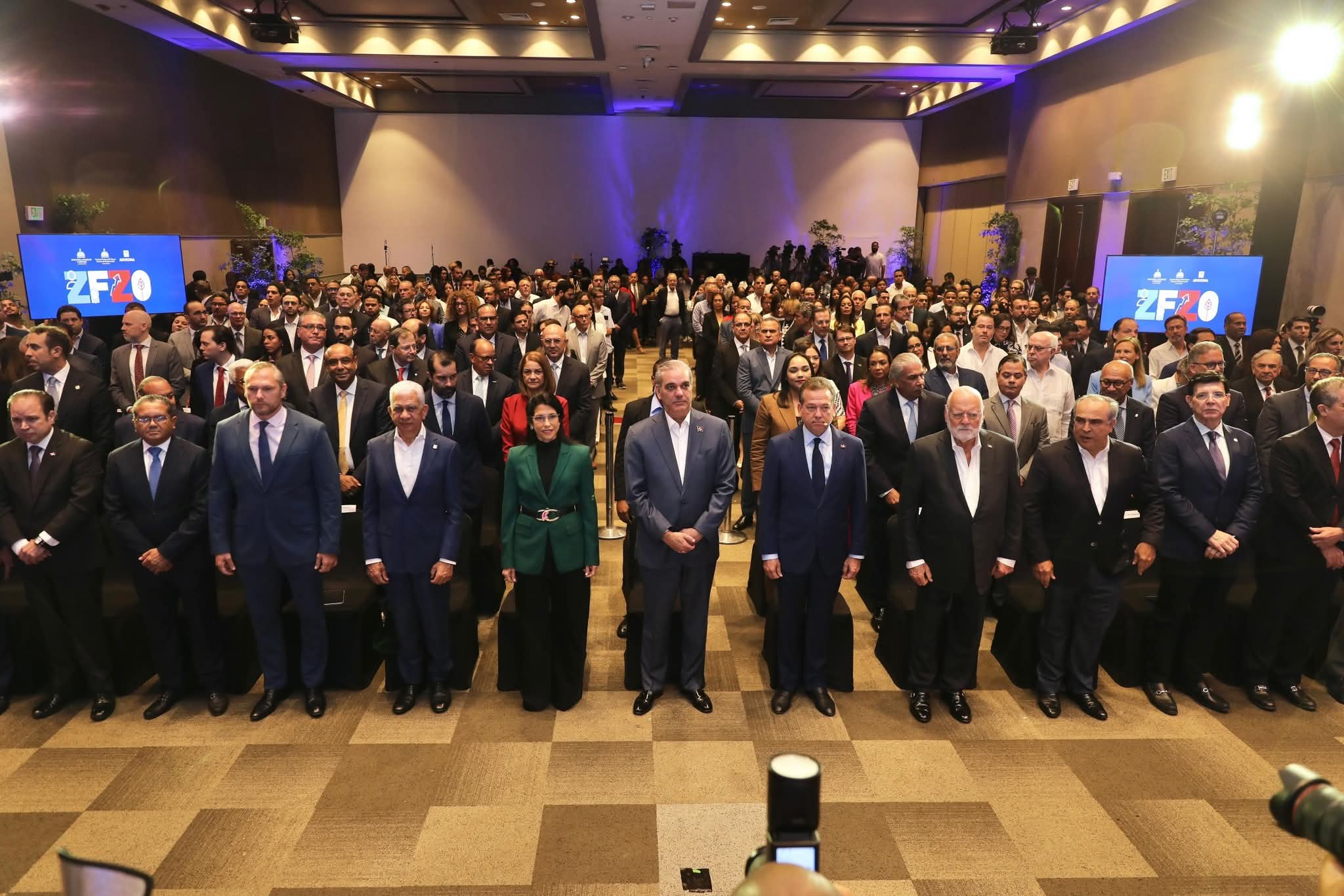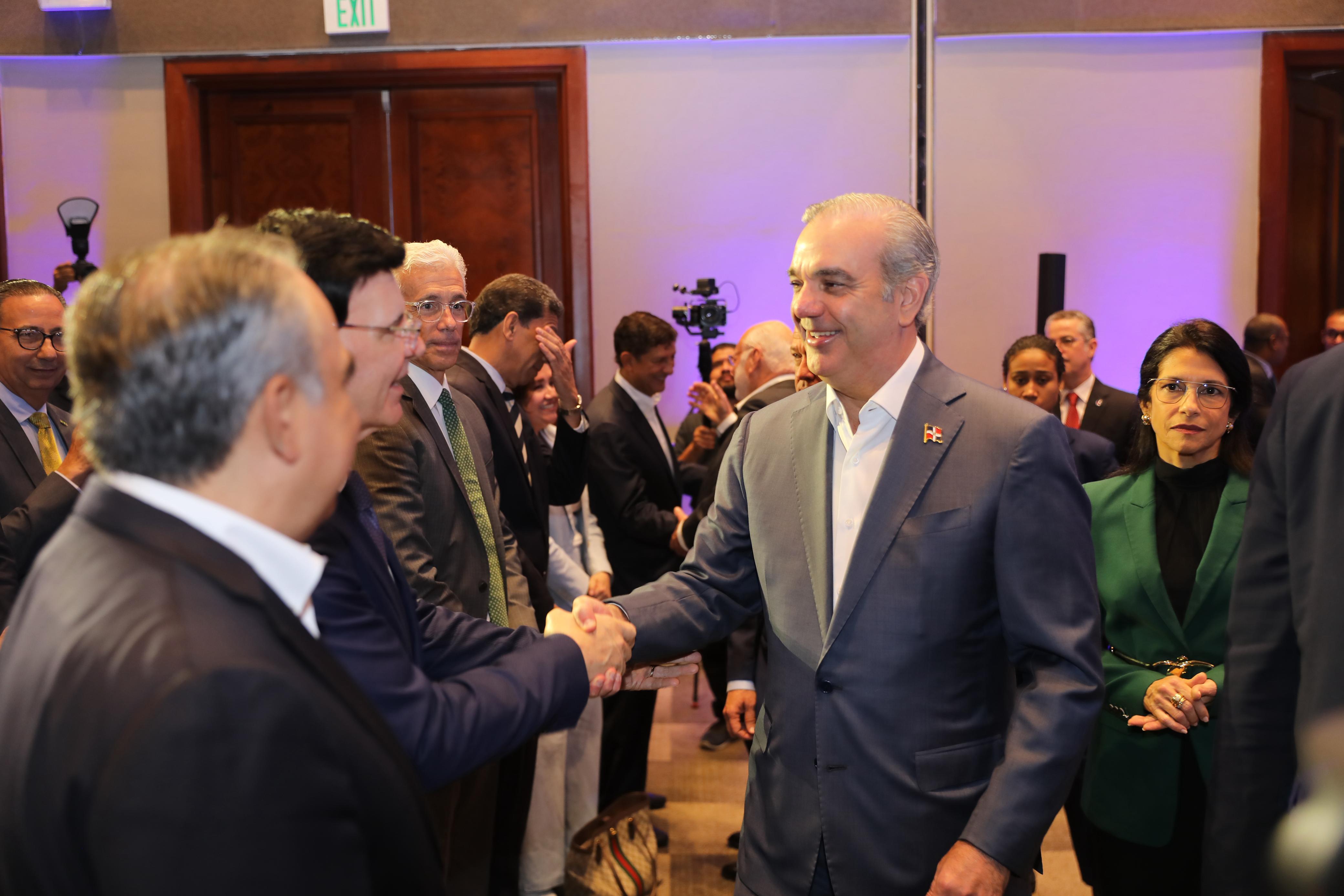 Acompañaron al mandatario, el presidente del Senado, Ricardo de los Santos; los ministros de Industria, Comercio y Mipymes, Víctor Bisonó; de Energía y Minas Joel Santos; los directores del Consejo Nacional de Zonas Francas de Exportación, Daniel Liranzo; de ProDominicana, Biviana Riveiro; empresarios y representantes del cuerpo diplomático acreditados en el país.