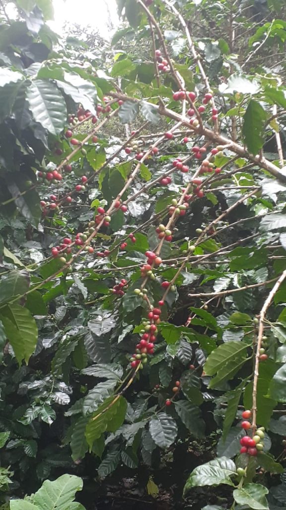 Foto en tiempo real de café maduro de Paraíso.