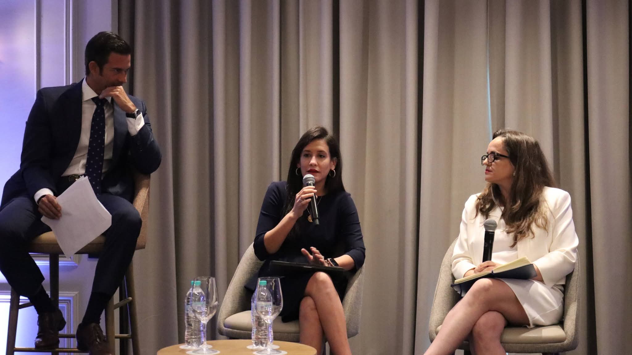 La conversación reunió a Laura Sanchís, gerente de Banca de Inversión de Banco Popular Dominicano; Katherine Rosa, socia de Energía y Financiamiento de Proyectos de Jiménez Peña; Mariana Ruiz, jefa de representación regional del Banco Europeo de Inversiones; y Rosa Romero, vicepresidente de Finanzas Estructuradas de Banco BHD.